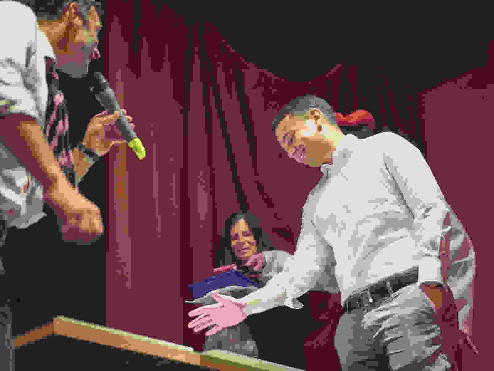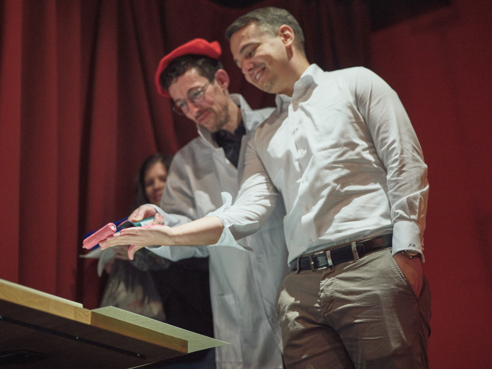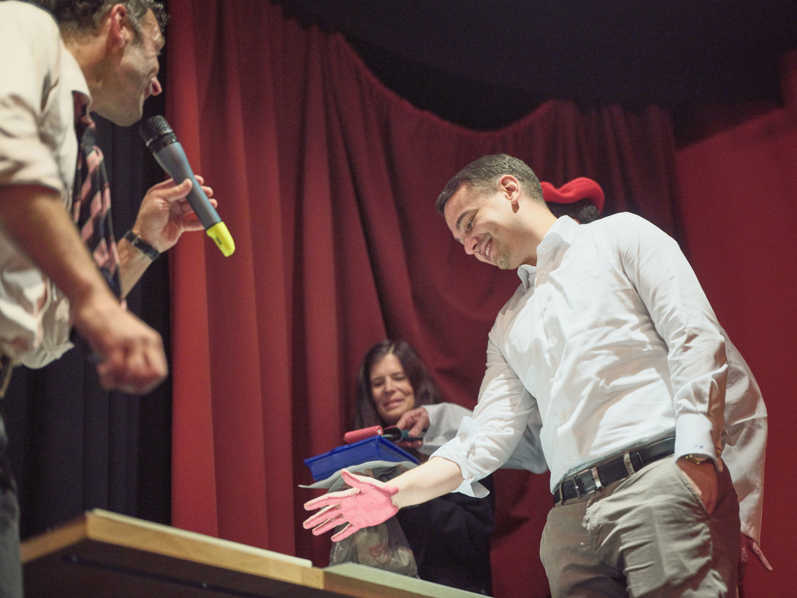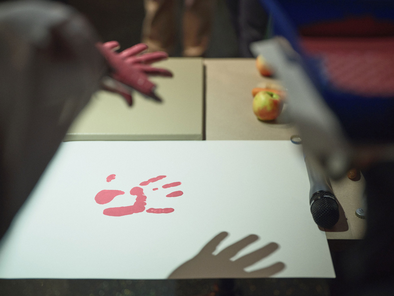 Die Entstehung des sechsten Handabdrucks auf der Leinwand durch Johannes Grob mit künstlerischer Anleitung von Pascal Schneider.