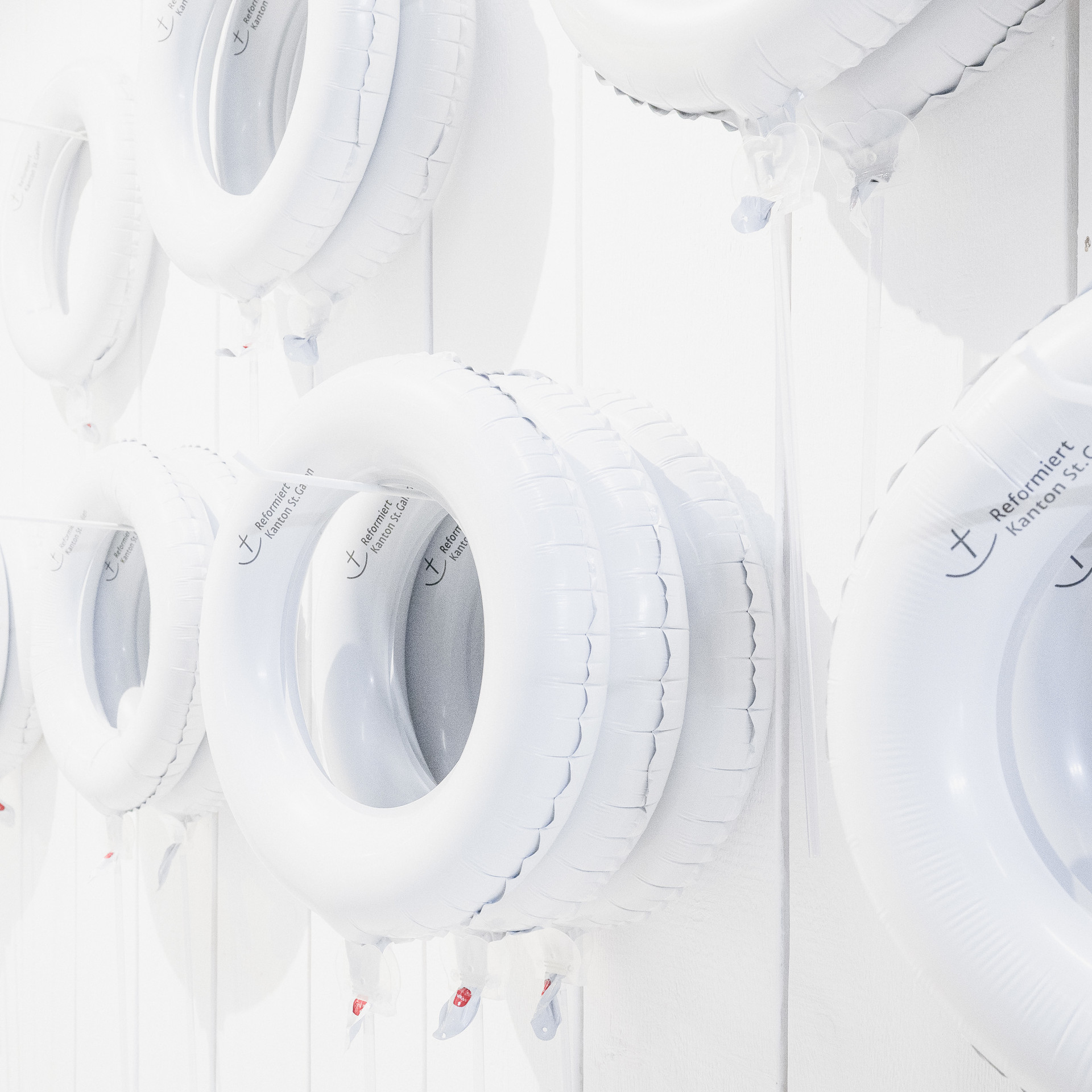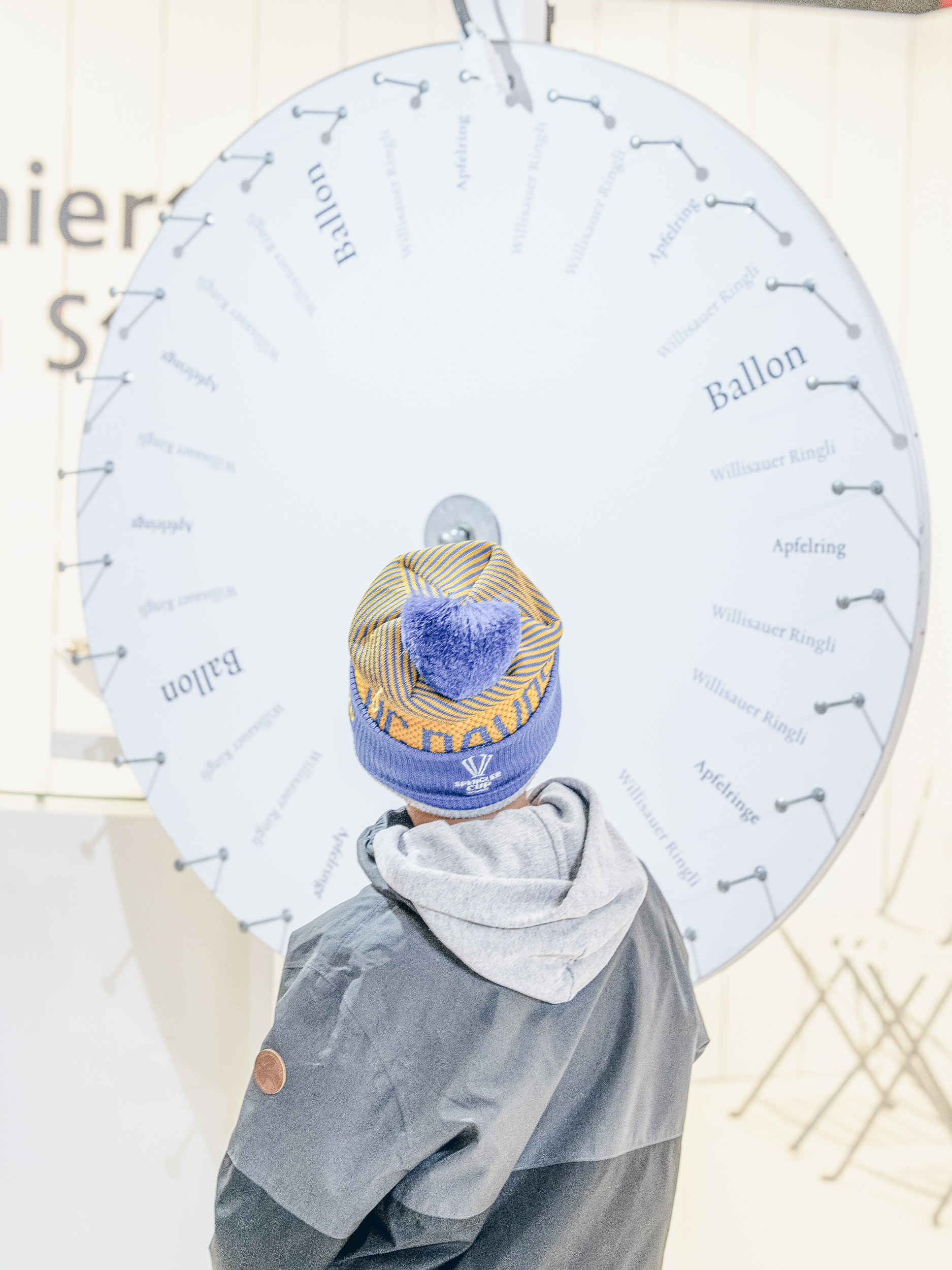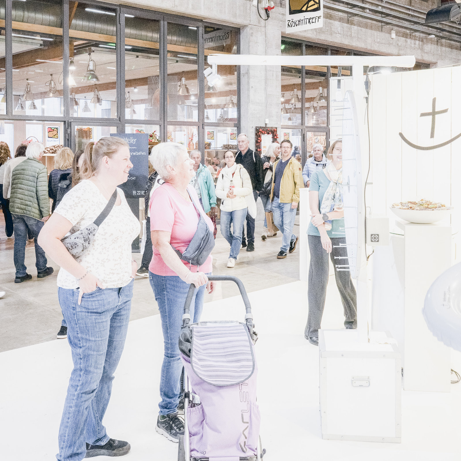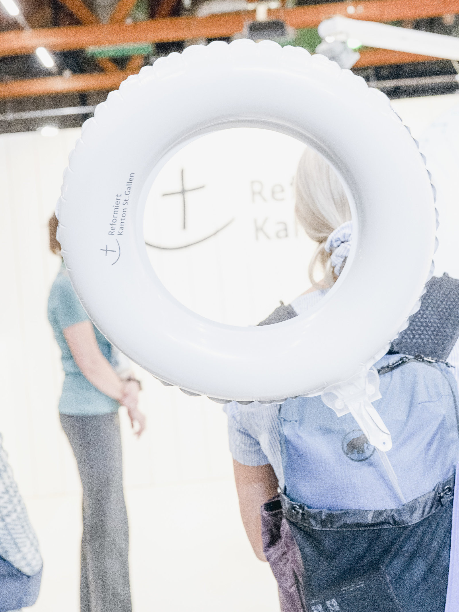 ref-sg.chZur OLMA gehören Glücksrad und Ballone einfach dazu. Und wir lieferten eine Idee, bei der alle gewinnen. Wer das Rad dreht, geht nämlich nicht leer aus. In jedem Fall gibt es einen Segensspruch zu gewinnen. Persönlich, poetisch und garantiert tröstlich. Ein Segen to go, quasi. Und für besonders Glückliche: ein Heiligenschein. Nicht bildlich, sondern ganz real. Die ballonförmigen Heiligenscheine wurden eigens für die OLMA entworfen und avancierten zum Hingucker schlechthin. Wer damit über die Messe schlenderte, trug den Stand sichtbar mit – über Köpfe hinweg.