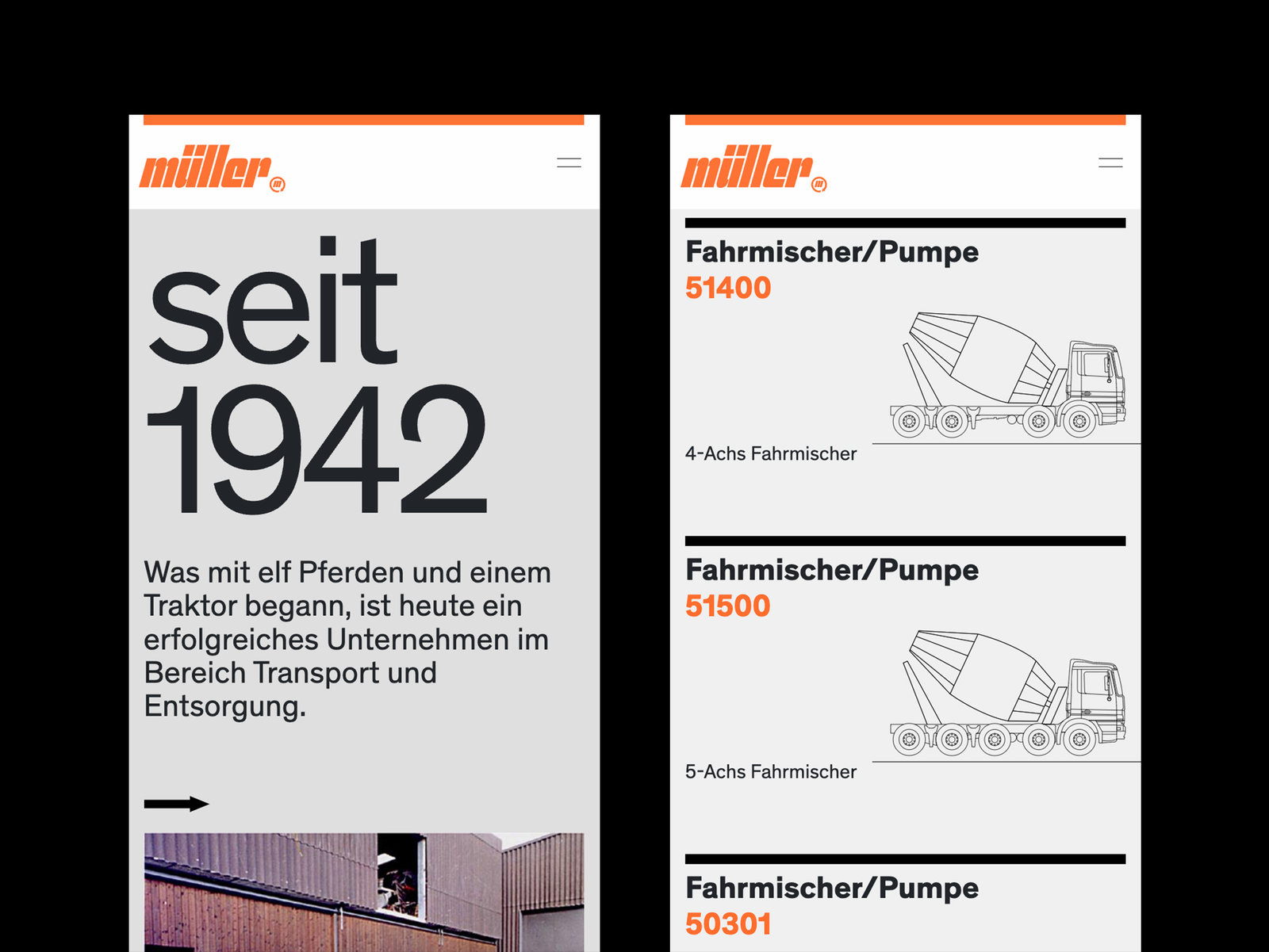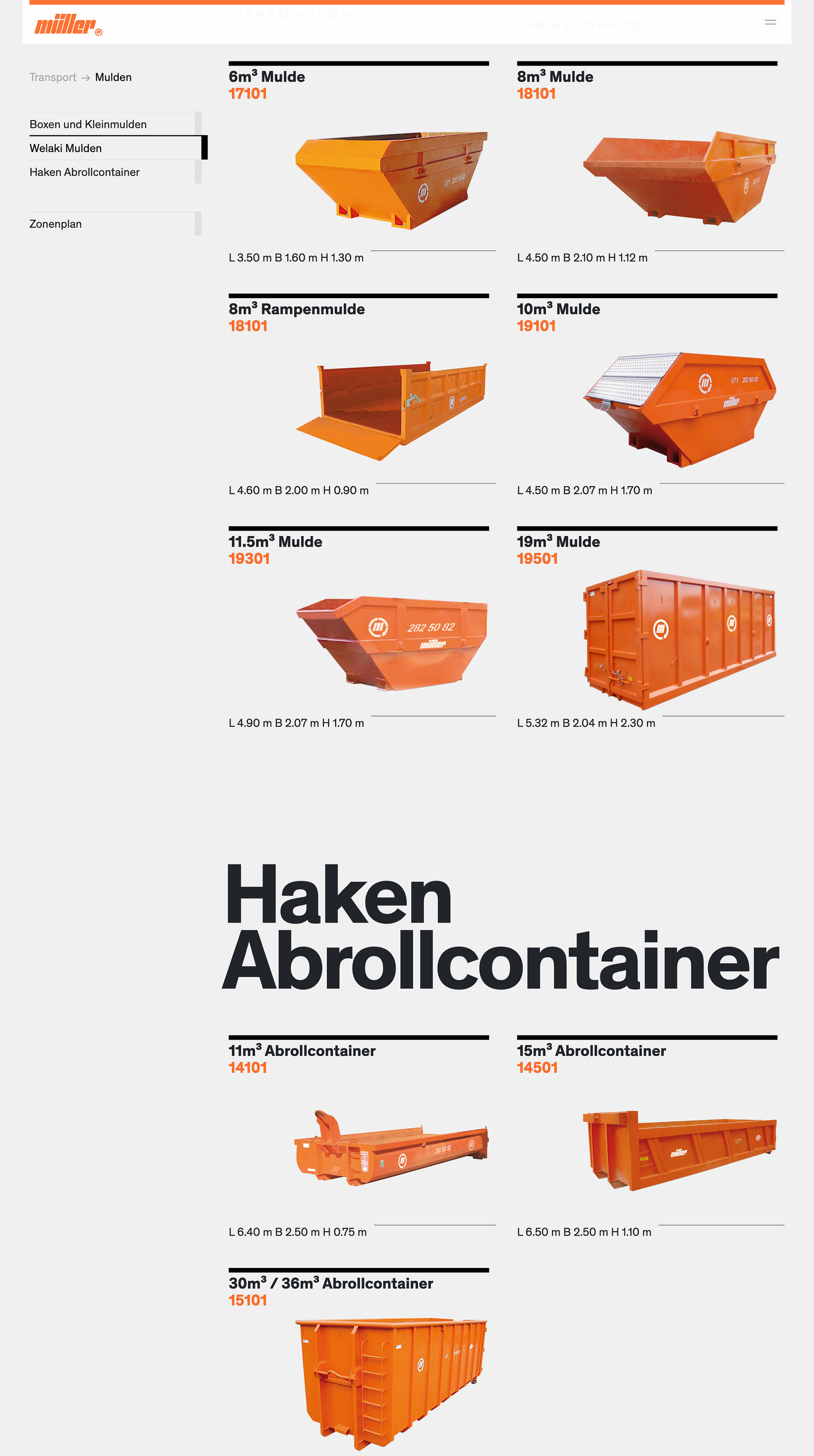 Die Ostschweizer:innen begegnen ihnen fast täglichen: Den grünen Fahrzeugen und den orangenen Mulden von Max Müller, der Schriftzug ist ebenfalls unverkennbar. Entsprechend wurde an den Farben und dem Logo nichts geändert, die neue Website spielt mit den beständigen und allseits bekannten Designs von Müller und bringt sie in eine moderne Form. Die Seite wurde neu gegliedert und kommt benutzerfreundlich und frisch daher, Fahrzeugillustrationen und Fotografie stammen ebenfalls von uns.