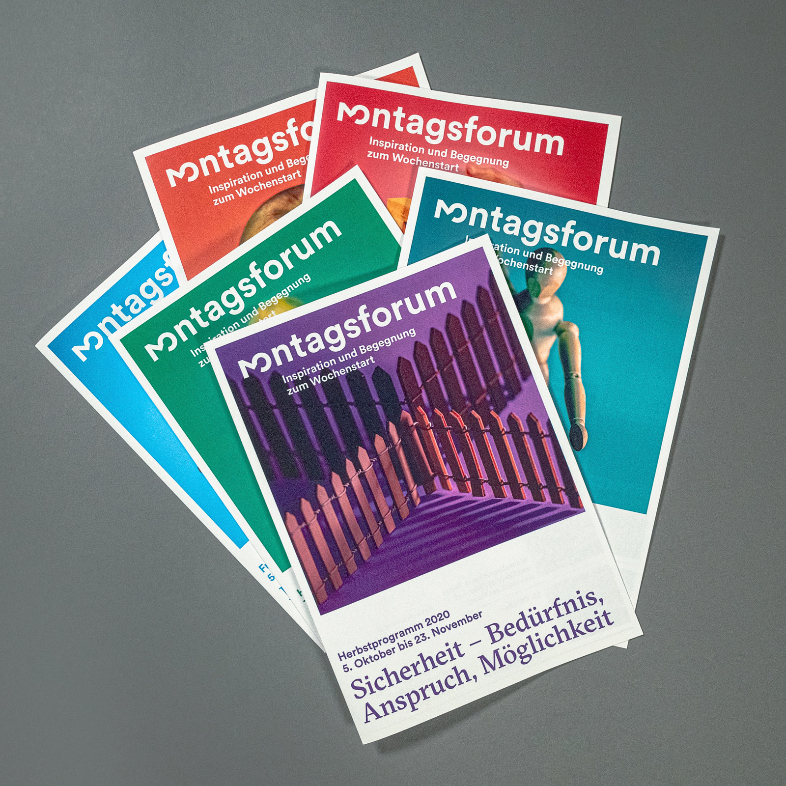 Zu diesen zwei Veranstaltungsreihen gestalteten wir die Programmflyer. Auch das Logo und die Webseite des Montagforums stammen aus unser Feder.