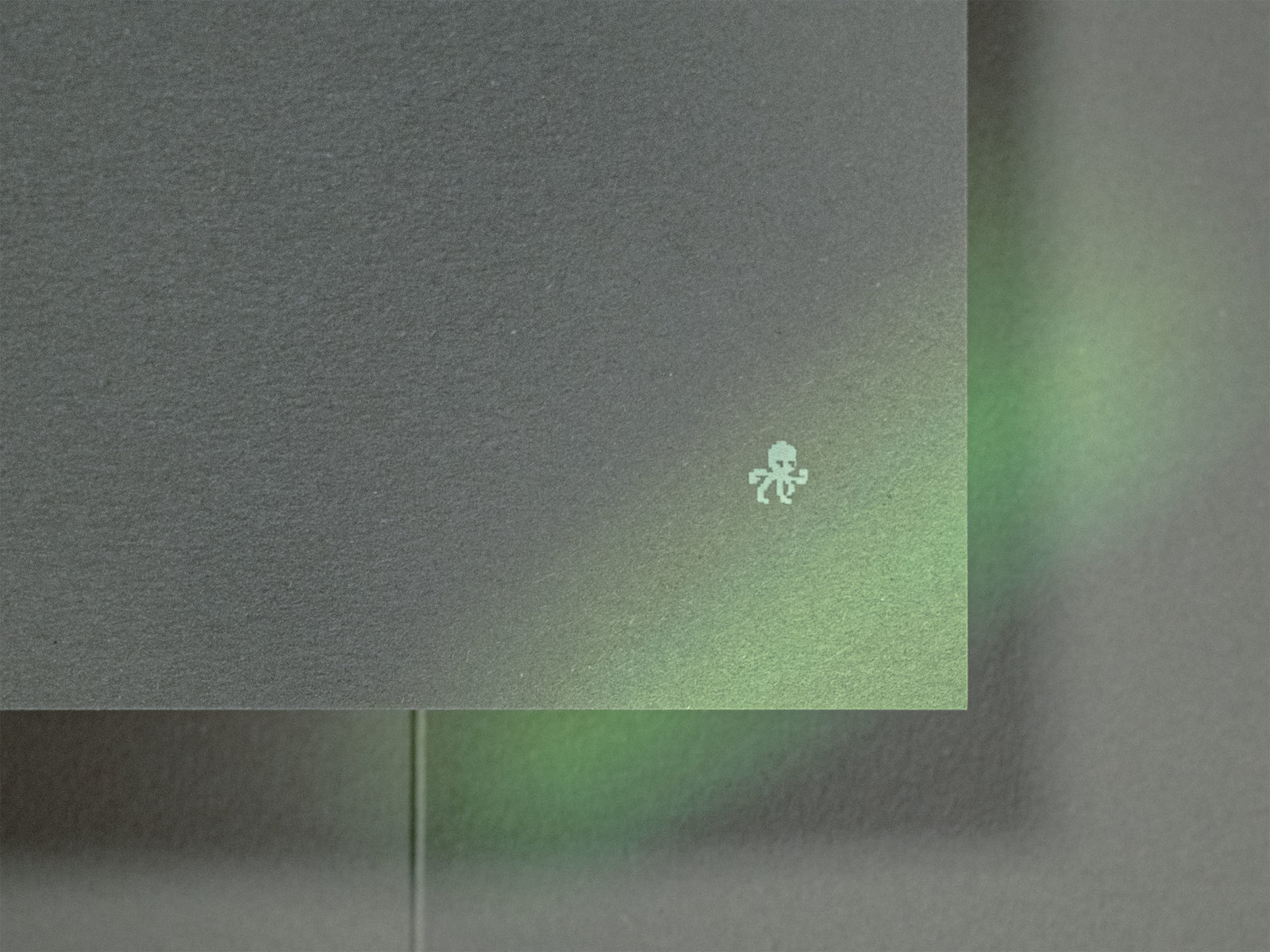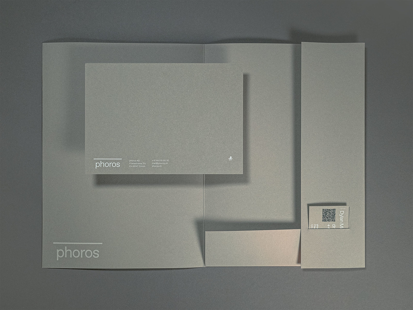 Die Briefschaft für phoros durften wir ebenfalls gestalten: Mit subtilem Tintenfisch und wandelbaren Farben – passend zur Namensherkunft.