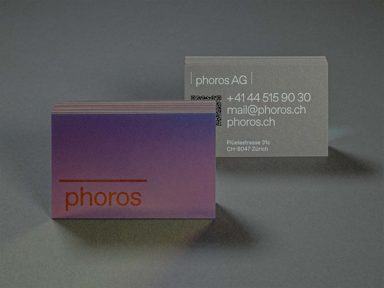 Foruhl (kurz für: Forster und Uhl) wollte wegen seiner Neuaufstellung einen frischen Namen. Die Inhaber bezeichnen sich selbst als «Chamäleon der Architektur». Ein spannendes Tier – für uns gab es allerdings ein passenderes: den Tintenfisch. Er ist anpassungsfähig, intelligent und bunt. Farb- und Strukturanpassungen, die der Tintenfisch blitzschnell vornehmen kann, werden durch Pigmentzellen auf der Hautoberfläche vollzogen – den sogenannten Chromatophoren. Diese Bezeichnung leitet sich von den altgriechischen Wörtern «chromátion» (Pigment) und «phorós» (tragend) ab. phoros also als Hommage an den Tintenfisch und die bunte und anpassungsfähige DNA des Architekturbüros – der Name passt wie die Faust aufs Auge. Kommt die Ähnlichkeit von phoros und Foruhl hinzu.