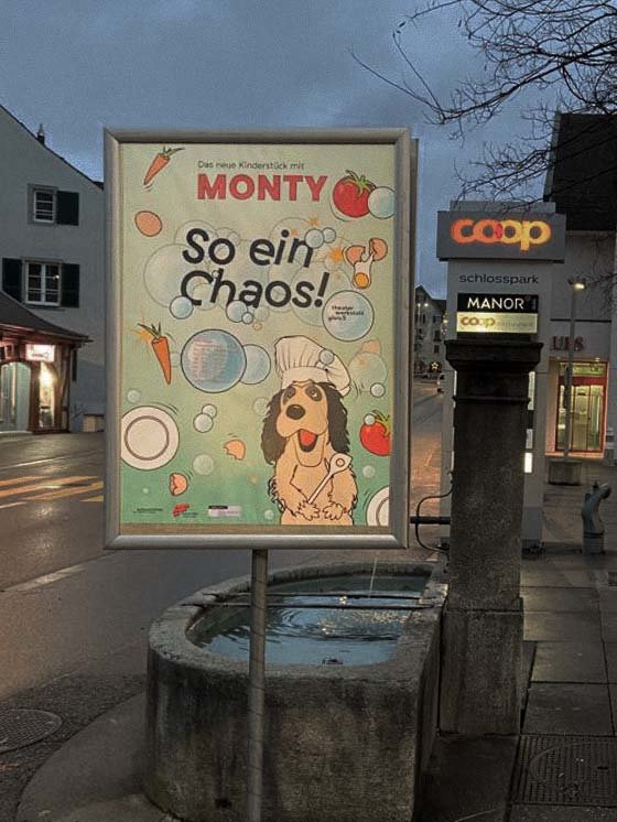 puppenspiel.chMonty stellt die Küche auf den Kopf. Im Kinderstück von Puppenspiel kocht er zusammen mit Simon einen Geburtstagsschmaus – Chaos ist hier vorprogrammiert. Für diesen Monty-Auftritt durften wir ein Logo kreieren für die gesamte geplante Serie, sowie die Plakate und Flyer illustrieren.