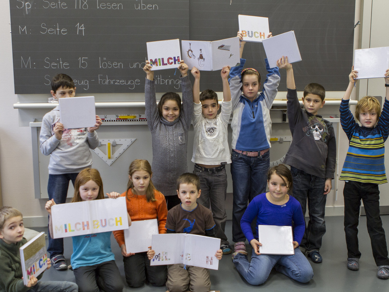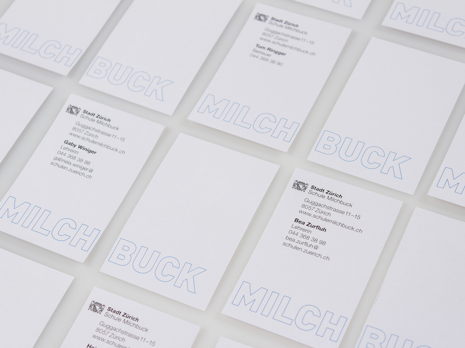 Die Schule Milchbuck in Zürich vereint Unter- und Oberstufe. Was sie besonders macht ist nicht nur, dass die Direktorin Monika Dolder sämtliche rund 800 Schülerinnen und Schüler mit Namen kennt, sondern dass sie eigene Ideen umsetzt. Angefangen beim eigenständigen Auftritt. Wir haben ein Corporate Design geschaffen, welches von allen Kindern individuell ergänzt werden kann. Die typografisch schlichte Outline-Schrift animiert dazu.