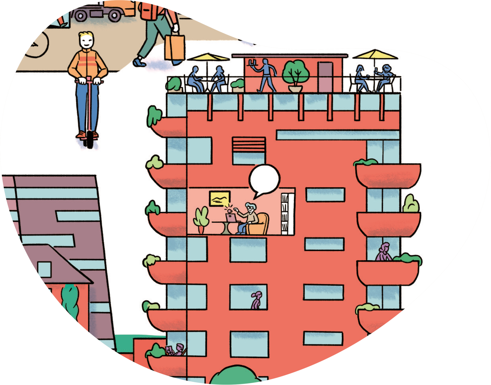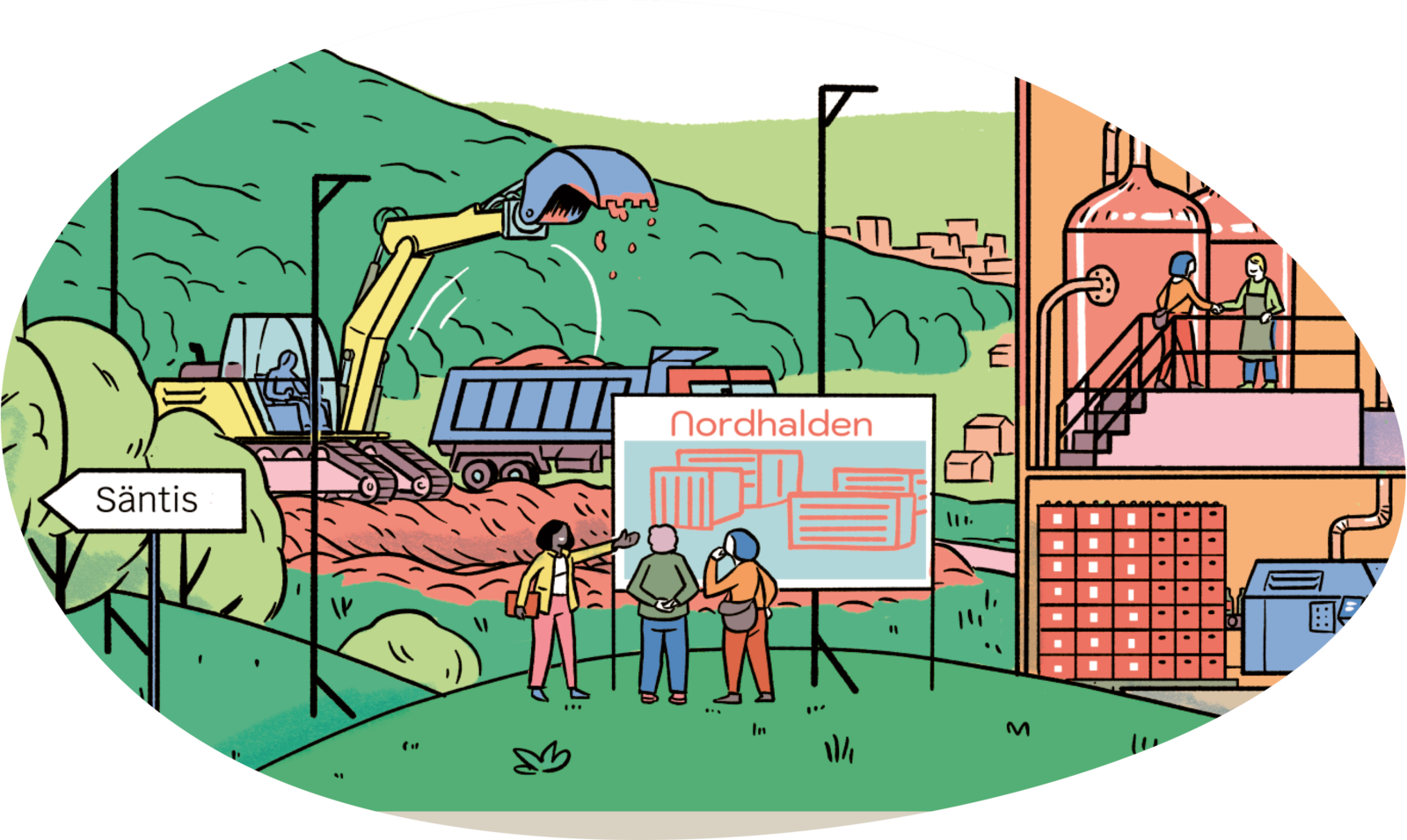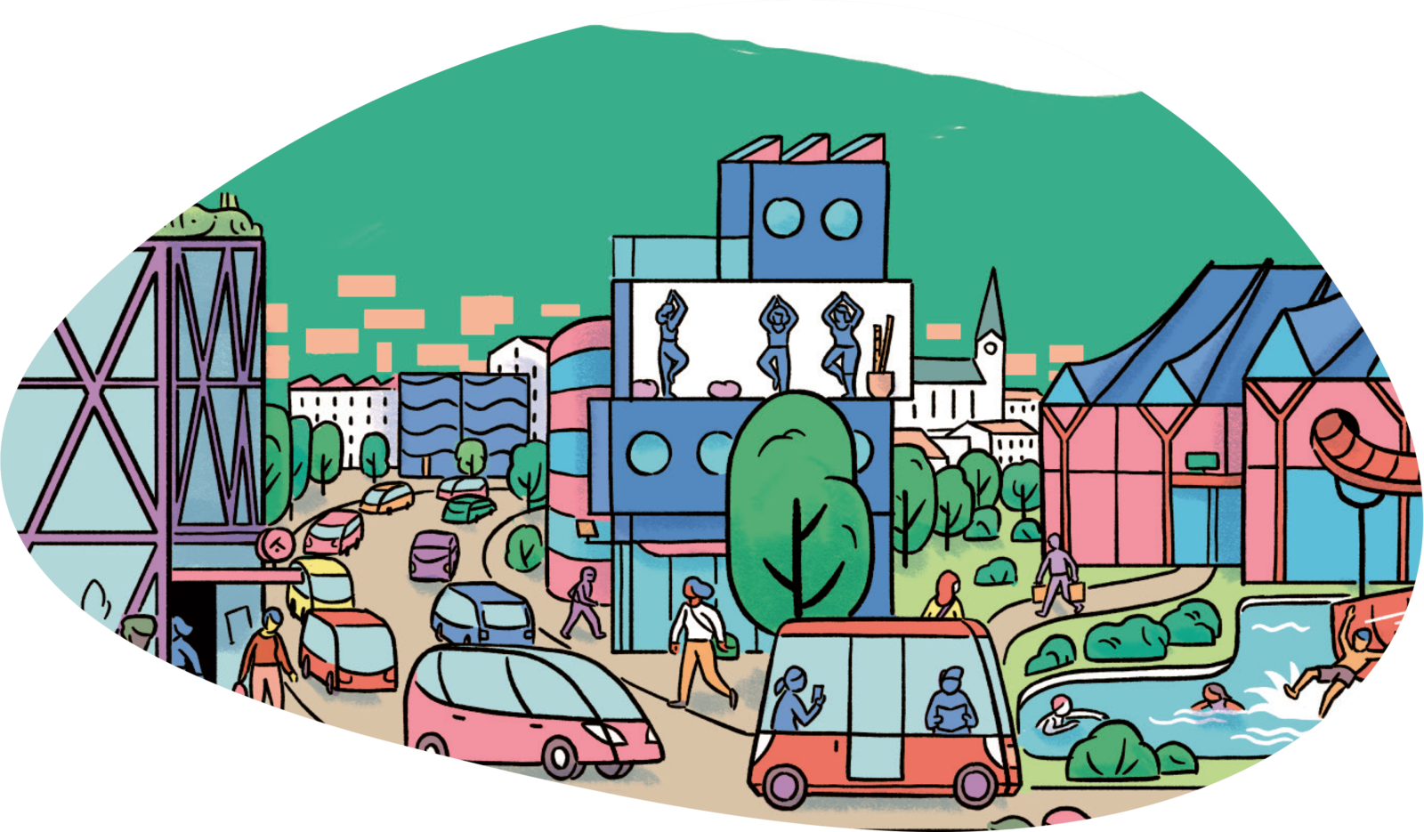 Wie macht man eine Entwicklungsplanung greifbar? Gabriela Debrunner und Laura Iseli haben sich dieser Herausforderung angenommen und eine Vision für das Areal für 2050 in Zusammenarbeit mit der Projektleitung und dem Kernteam des Massnahmenbündels «M1 Standortförderung» erstellt. Um diese den Stakeholdern zu vermitteln, haben wir gemeinsam die Idee eines Visionsbildes und eines Tagesablaufs im Leben der ASGO-Bewohnerin Anna entwickelt. Das Ergebnis war ein Plakat, das es schafft, den Mehrwert auf kleinem Raum zu visualisieren und zu erzählen. Die Vision zeigt die komplexen bestehenden und künftigen Zusammenhänge der Standorte sowie die Vorteile für Freizeit, Arbeit und Wohnen.