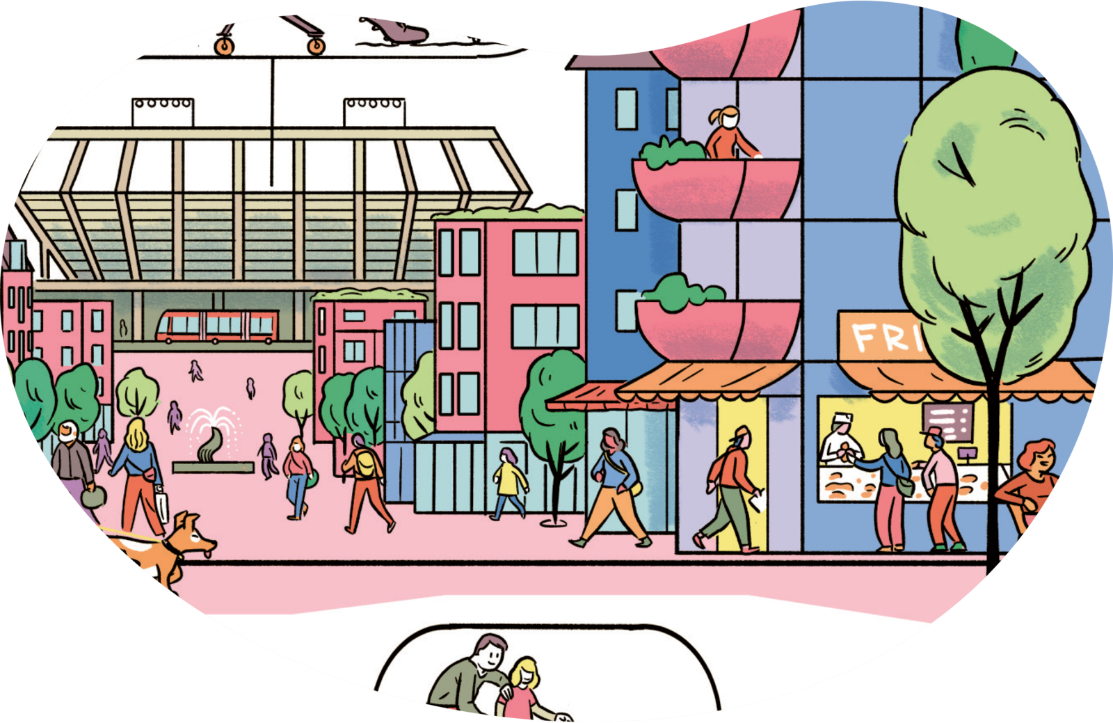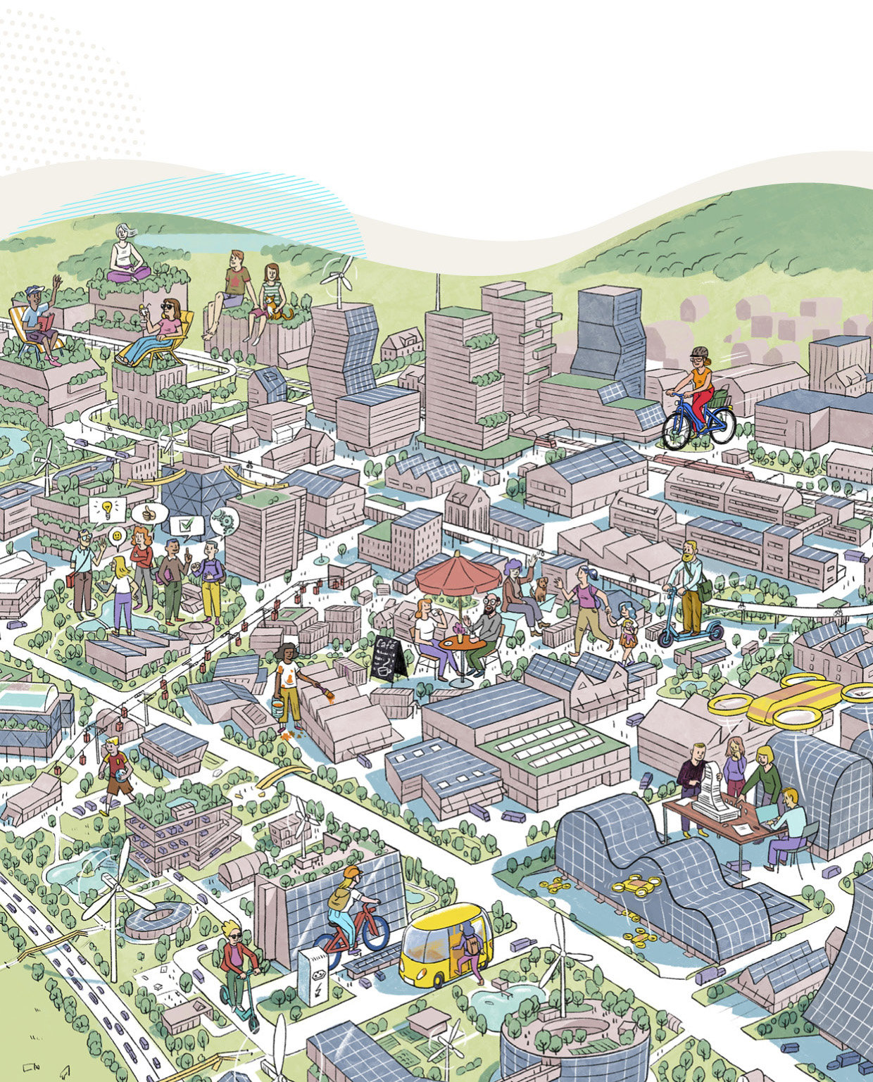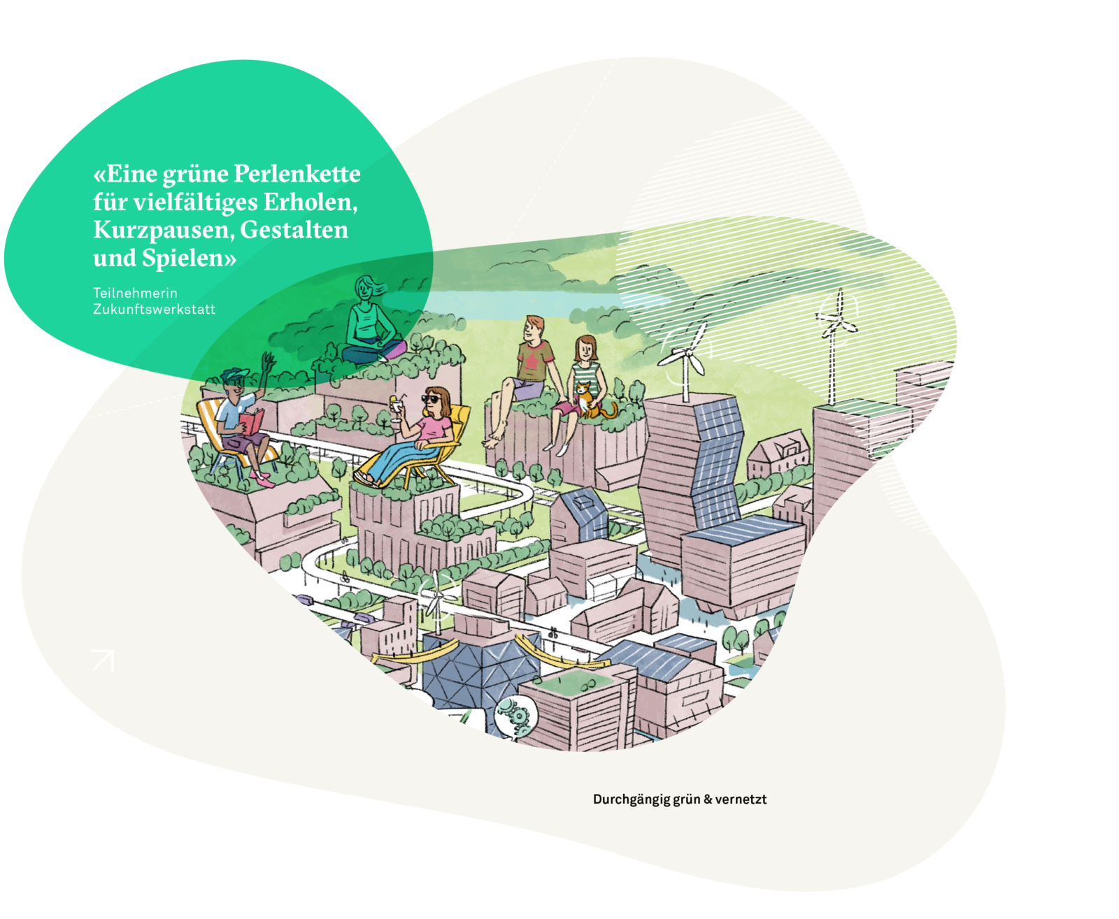 Wir durften die Ergebnisse von IVO Innenentwicklung als Dossier visualisieren. Dazu haben wir für Titelseite und Inhalt ein Wimmelbild mit Jonathan Nehmet entwickelt, das die Vision 2050 des Areals darstellt.