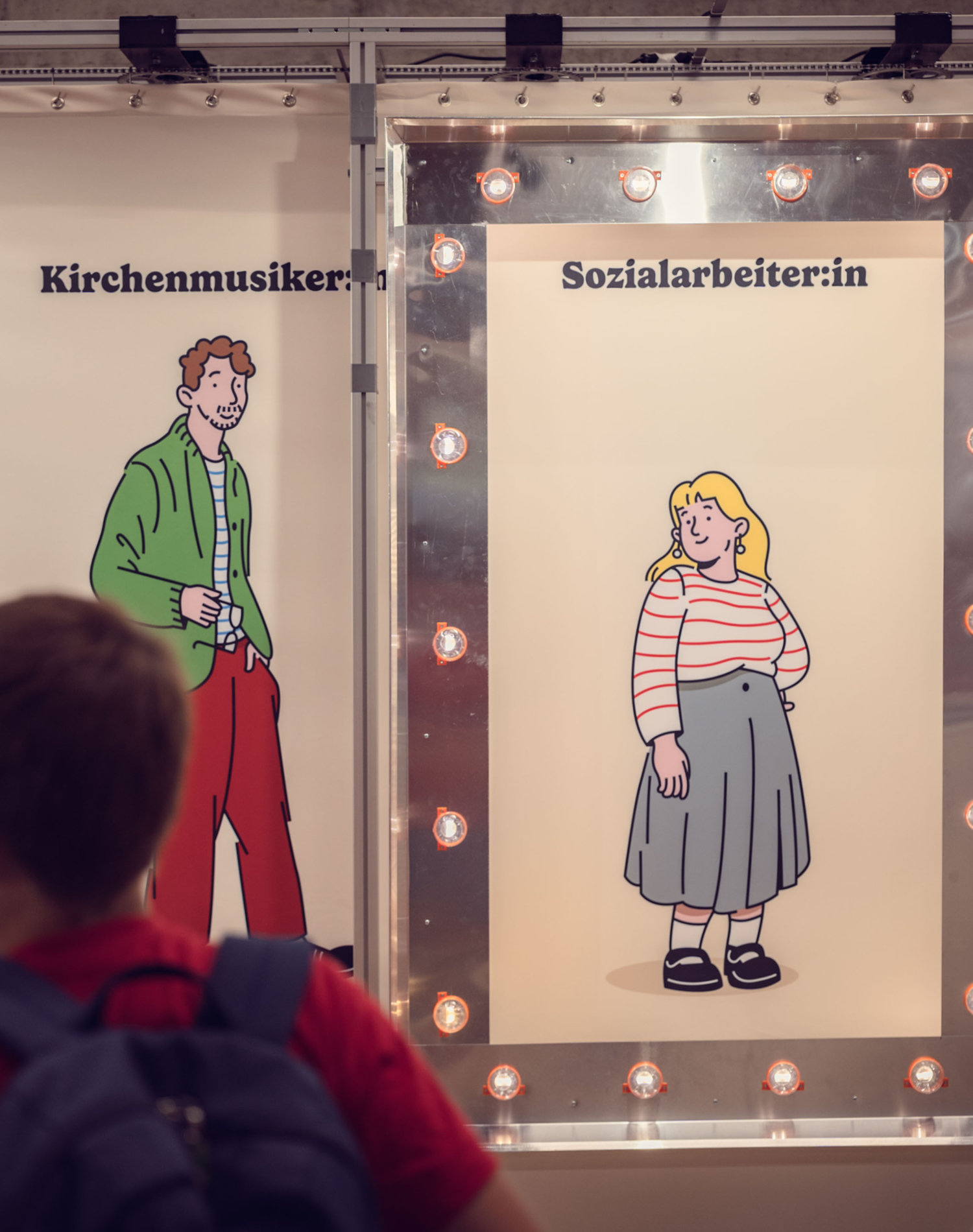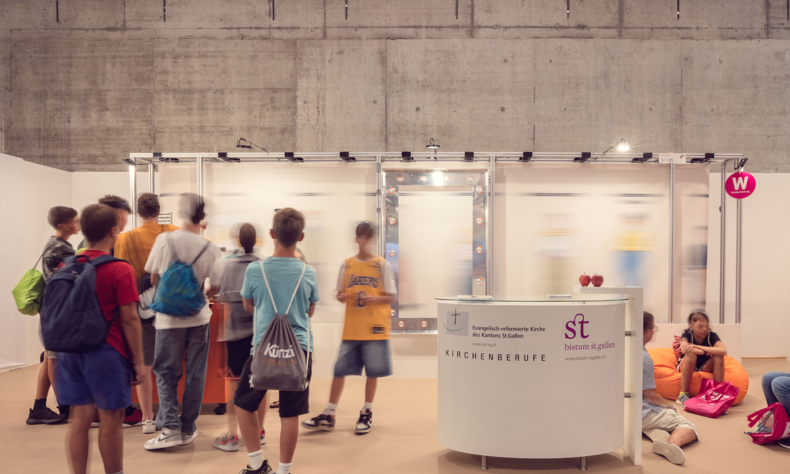 An der Ostschweizer Bildungsausstellung (OBA) 2024 trat die Evangelisch-reformierte Kirche gemeinsam mit dem Bistum St.Gallen auf. Eine unterhaltsame Kügelibahn funktionierte dabei als Berufsmaschine und wurde zum Magnet für die jungen Erwachsenen. Das lief wie folgt ab: Die Kugel konnte unterschiedliche Wege gehen, längere und kürzere. Wenn sie im Ziel angekommen war, stoppte eine Art Laufband bei einem bestimmten Kirchenberuf, der dann wiederum den Besuchenden von den Experten und Expertinnen vor Ort erklärt wurde. Idee, Umsetzung, Illustrationen und Projektleitung waren von uns.