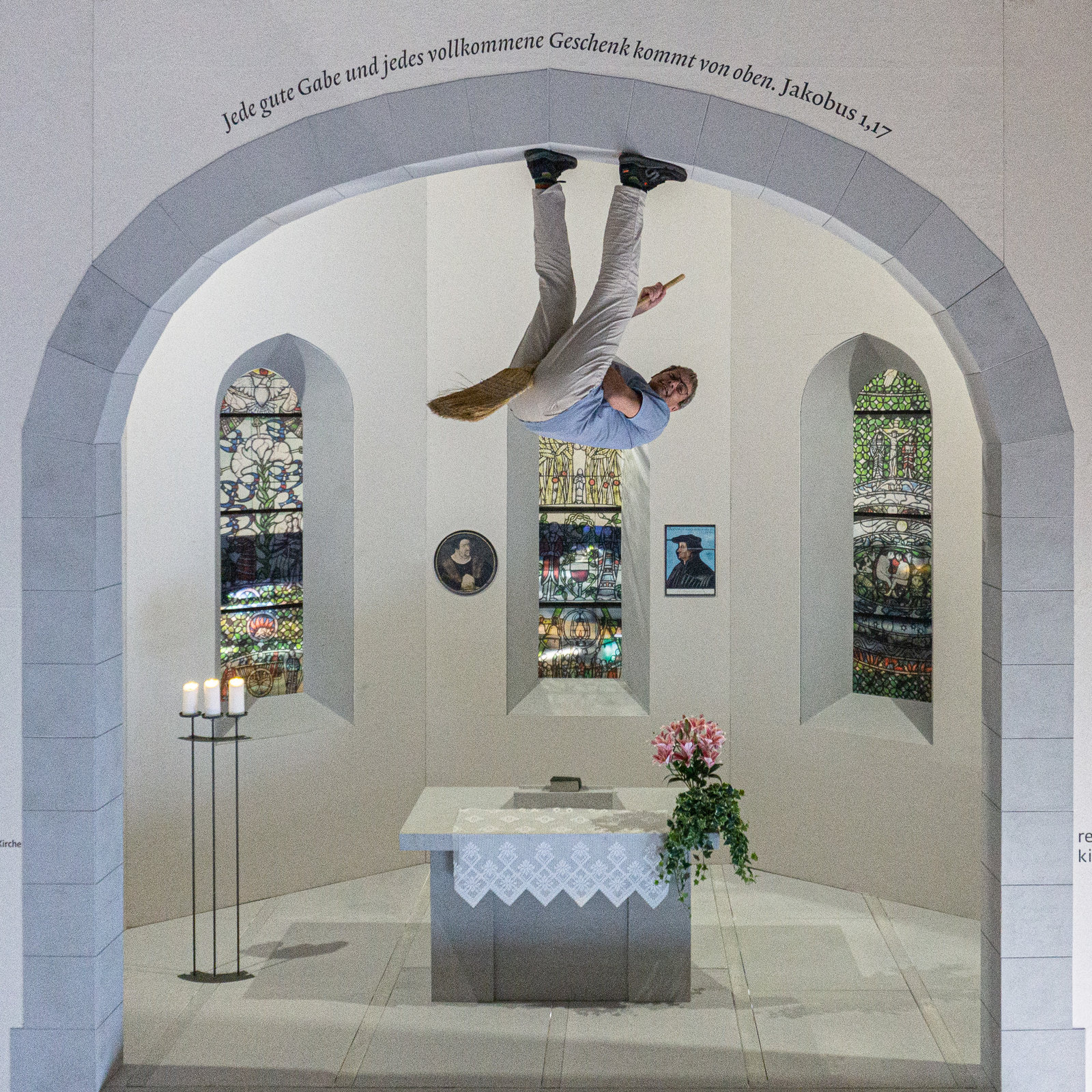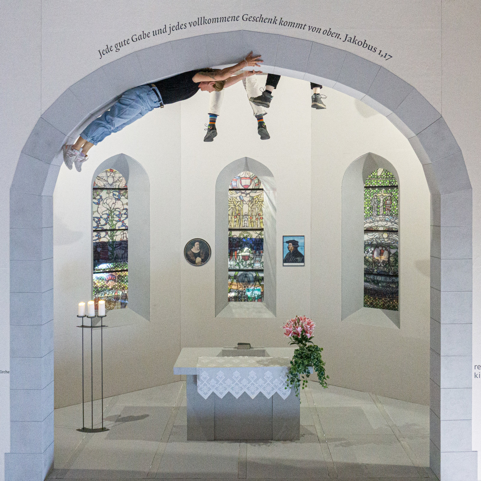 Es ist wieder so weit: Die reformierte Kirche geht an die Olma. Wir durften für sie den neuen Messestand konzipieren – und der steht für einmal Kopf. Denn wie sagt man so schön? Alles Gute kommt von oben. Oder nach Jakobus 1.17: Jede gute Gabe und jedes vollkommene Geschenk kommt von oben. Das Setting ist der Alten Kirche Wollishofen nachempfunden, die beiden Bilder im Hintergrund zeigen Zwingli und Vadian, weil die St.Galler reformierte Kirche an der diesjährigen Messe gemeinsam mit der Zürcher Kirche auftritt.