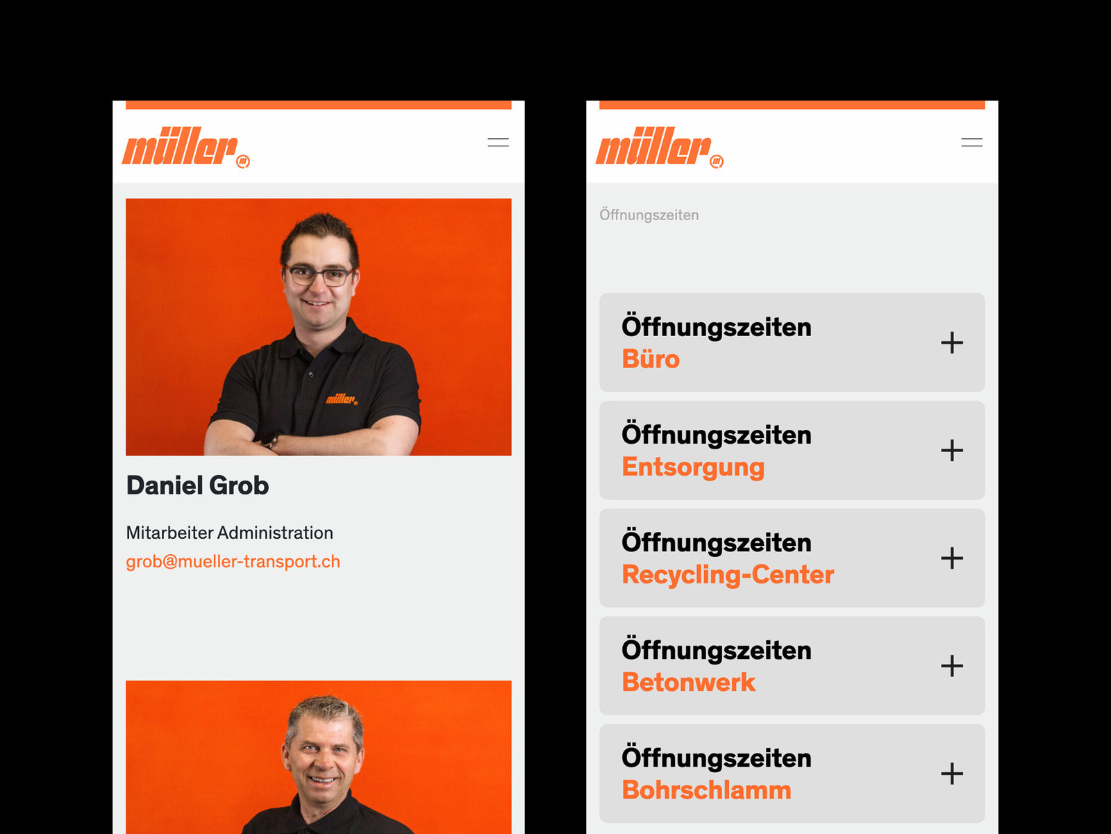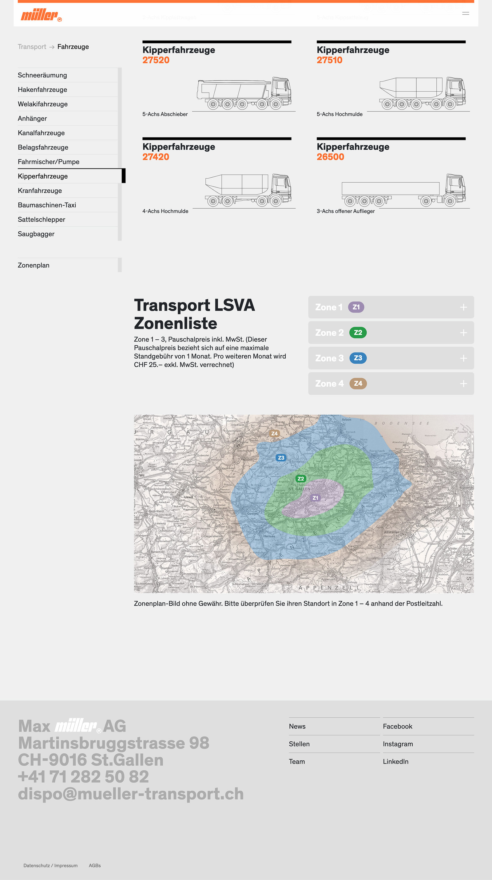 Die Ostschweizer:innen begegnen ihnen fast täglichen: Den grünen Fahrzeugen und den orangenen Mulden von Max Müller, der Schriftzug ist ebenfalls unverkennbar. Entsprechend wurde an den Farben und dem Logo nichts geändert, die neue Website spielt mit den beständigen und allseits bekannten Designs von Müller und bringt sie in eine moderne Form. Die Seite wurde neu gegliedert und kommt benutzerfreundlich und frisch daher, Fahrzeugillustrationen und Fotografie stammen ebenfalls von uns.