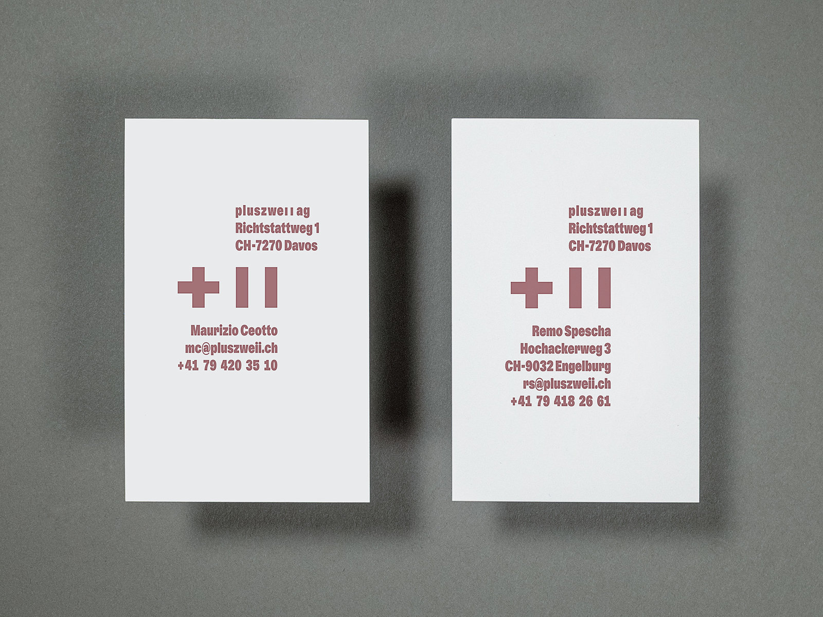 Die beiden Unternehmer Maurizio Ceotto und Remo Spescha gründeten eine neue Firma mit dem Namen pluszweii. Dazu durften wir das animierte Logo und eine kleine Briefschaft gestalten und umsetzen.