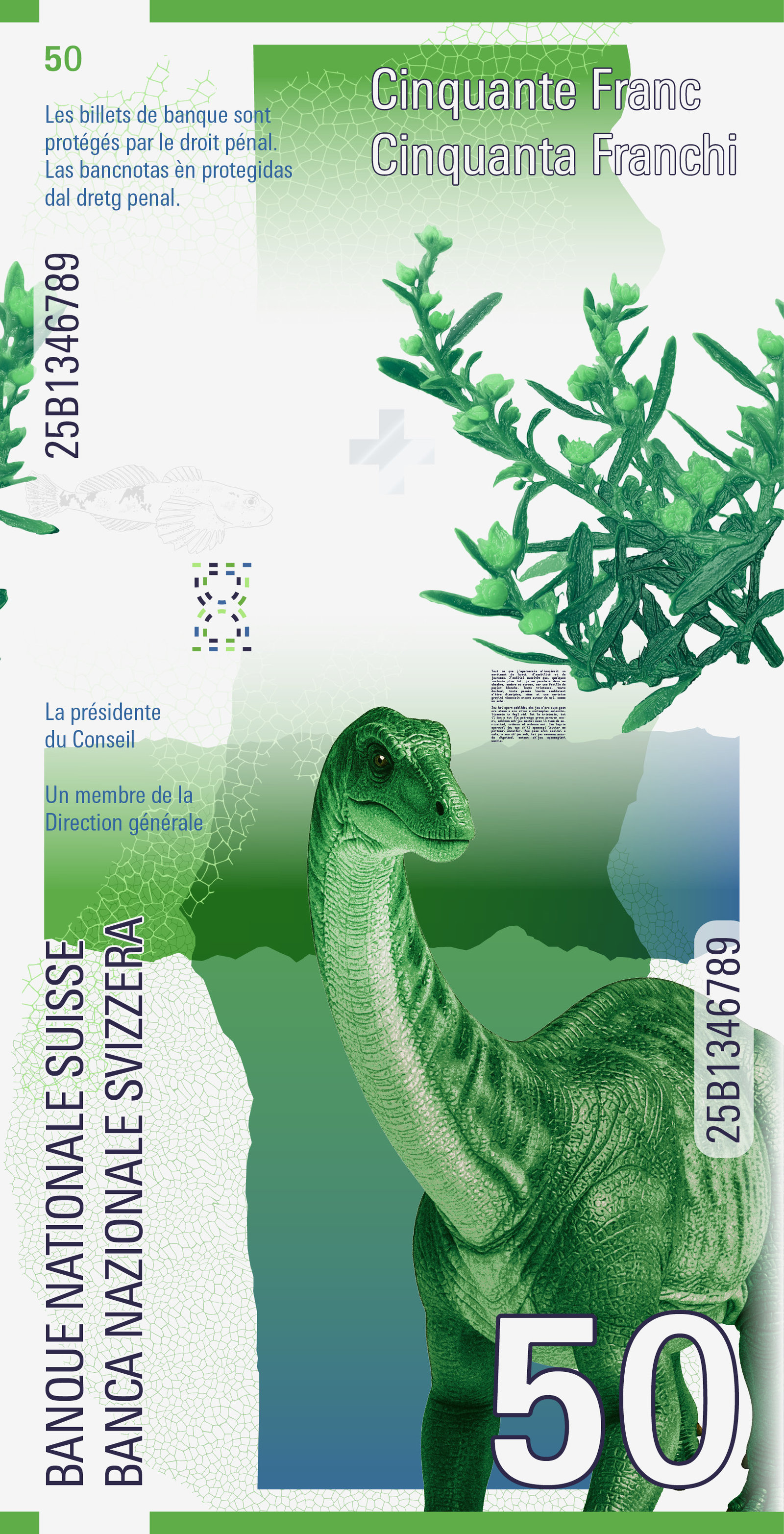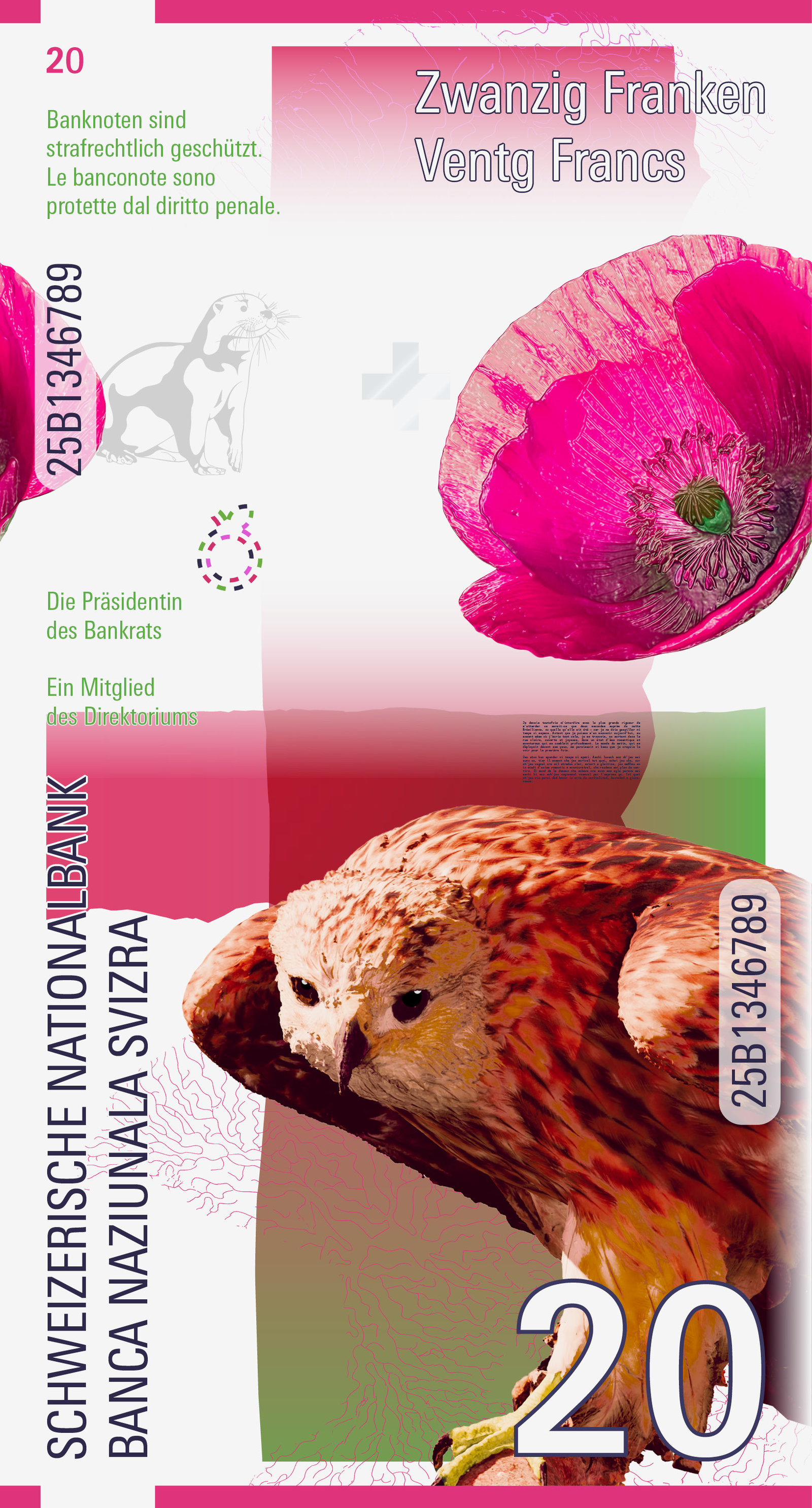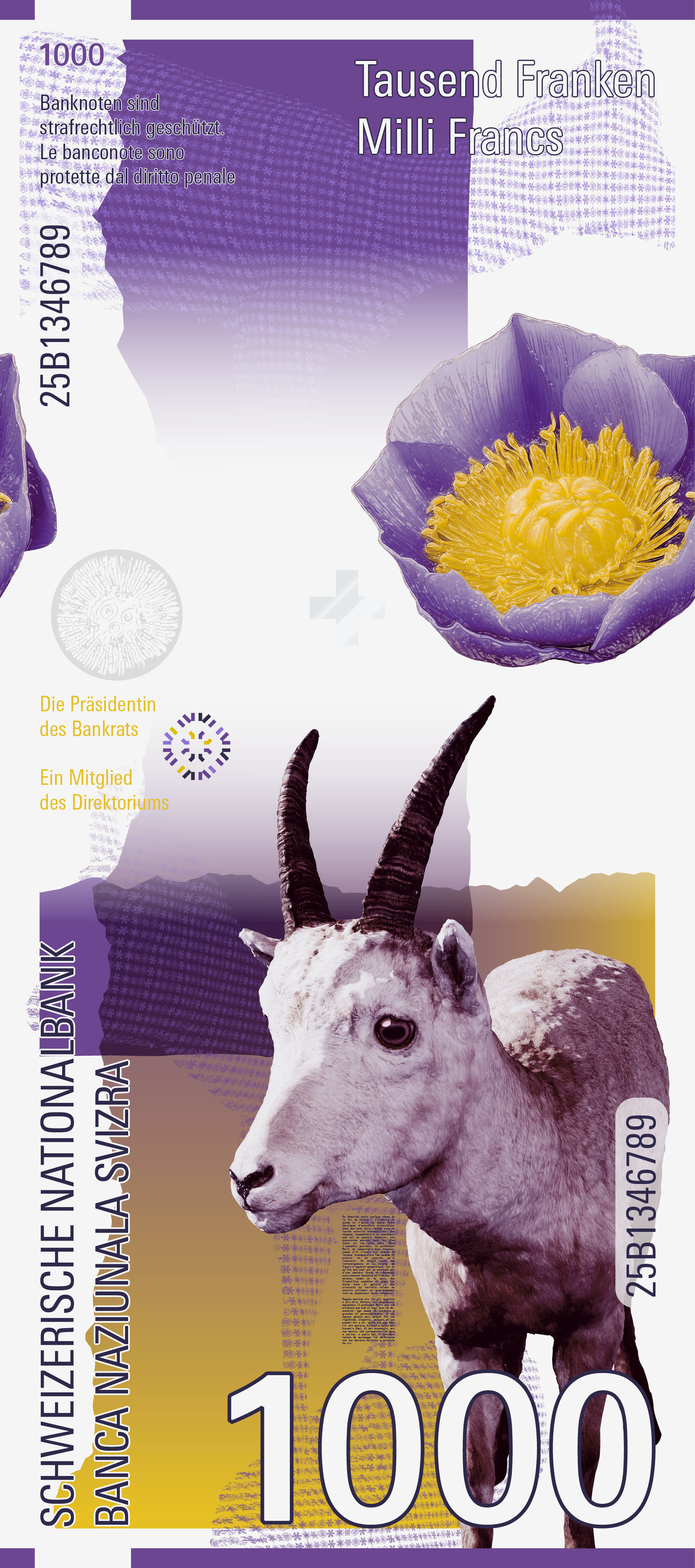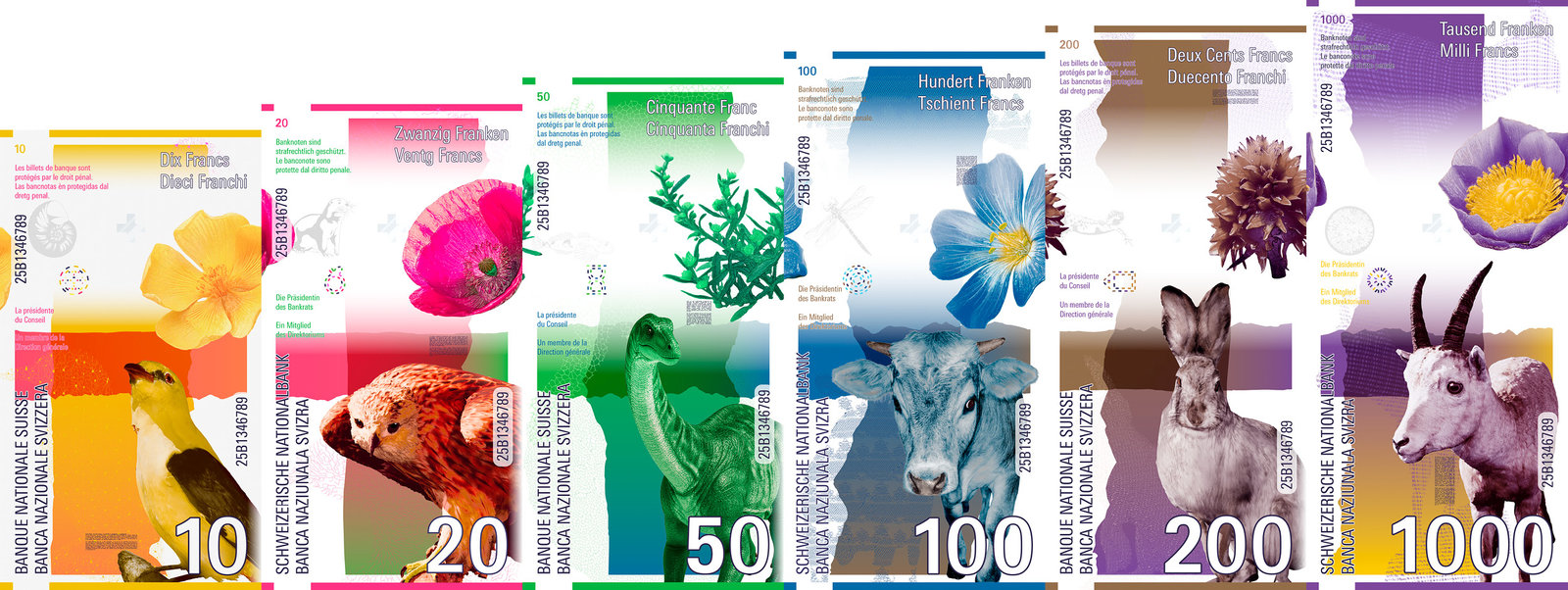 Der Text erscheint über die gesamte Banknotenserie hinweg – in allen vier Landessprachen. So entsteht eine leise, poetische Verbindung zwischen den einzelnen Noten.