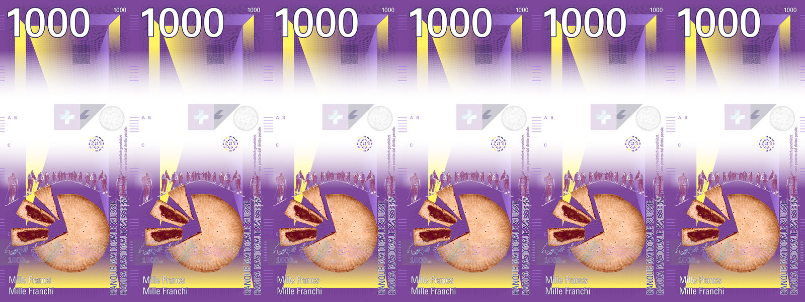 Ein verbindendes Element zieht sich über alle Noten hinweg: ein Panorama-Profil der Schweiz.