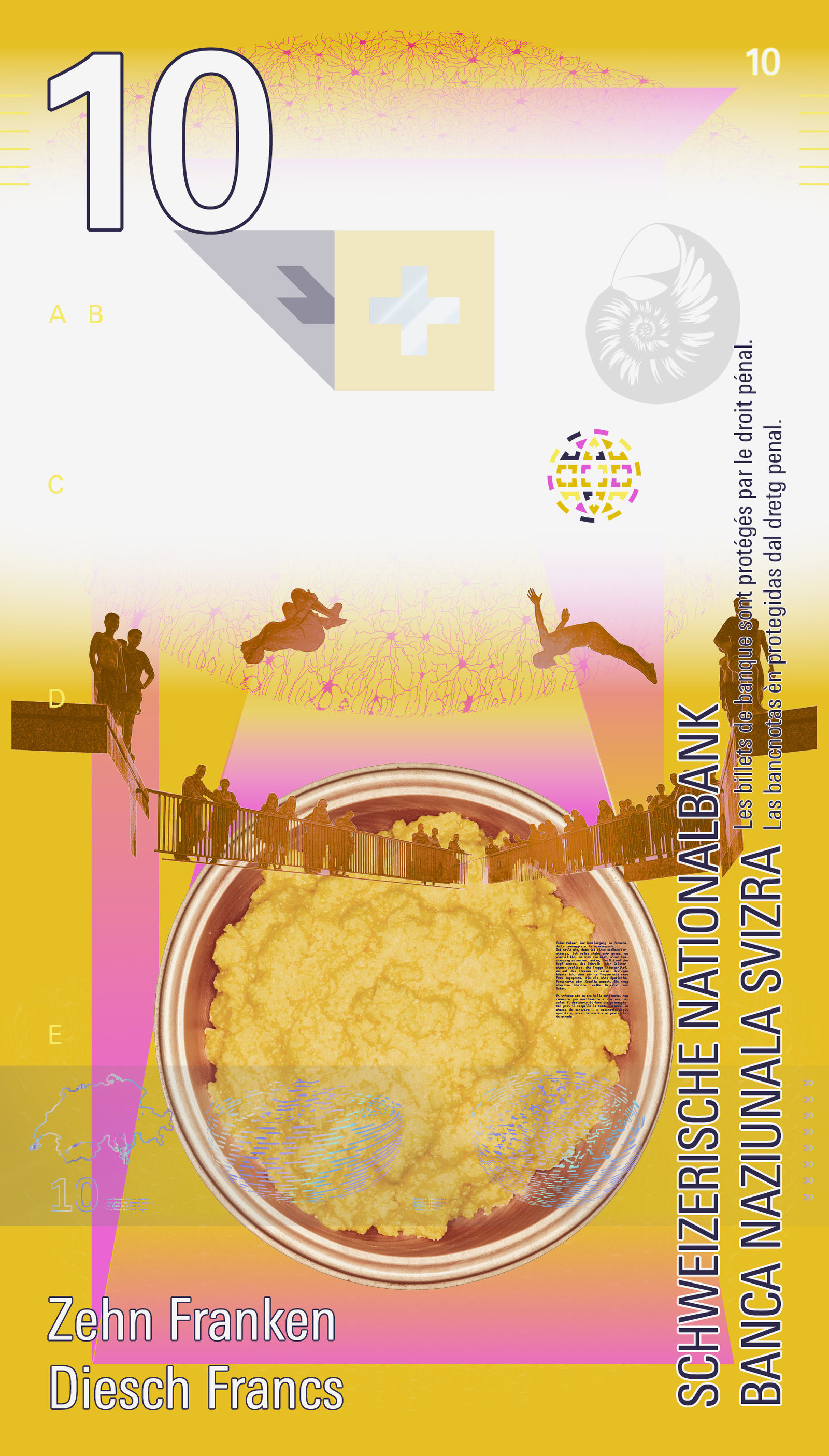Auch wenn unser Entwurf nicht ausgewählt wurde: Die Arbeit an einer neuen Schweizer Banknotenserie war für uns eine aussergewöhnliche gestalterische Erfahrung. Unser Beitrag trägt den Titel «Lebenswelten».